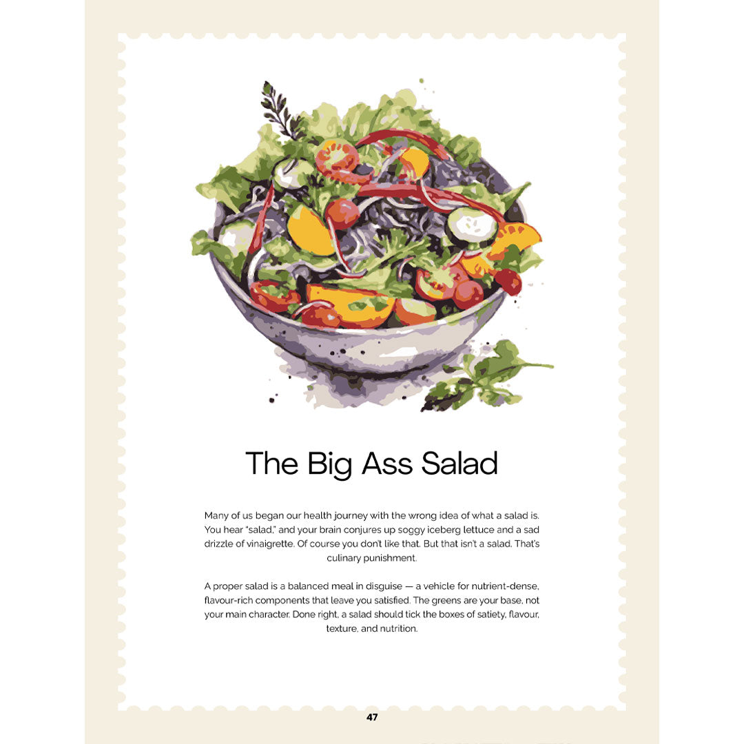 You’ll find everything from Egg White Oats that taste like apple crumble, to Big-Ass Salads that actually keep you full, to Cottage Cheesecake Bowls you’d swear came straight from a bakery.